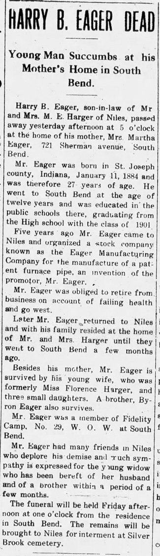 Published in the Niles Daily Sun (Niles, MI) on Wednesday, May 3, 1911.