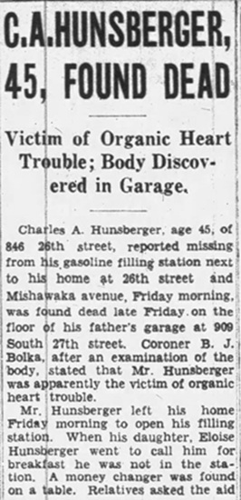 Mr and Mrs Harry Layer attended the funeral of Charles Hunsberger, held at South Bend, Tuesday afternoon.