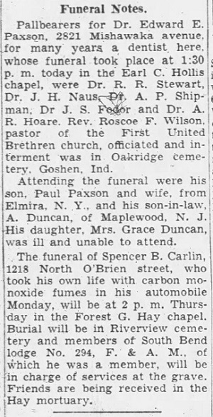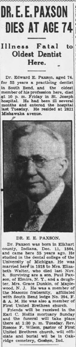 Published in the South Bend Tribune on Tuesday, February 21, 1939.