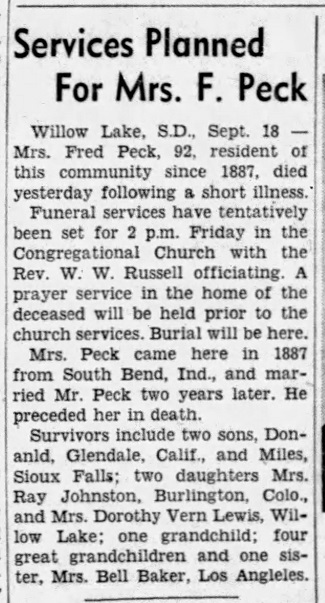 Published in the Argus-Leader (Sioux Falls, SD) on Tuesday, September 18, 1956.