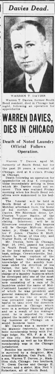Published in the South Bend Tribune on Sunday, August 13, 1933.