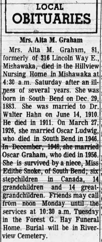 Published in the South Bend Tribune on Sunday, September 5, 1965.