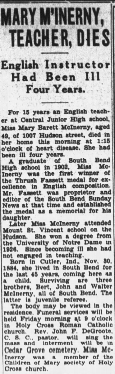 Published in the South Bend Tribune on Wednesday, July 18, 1934.