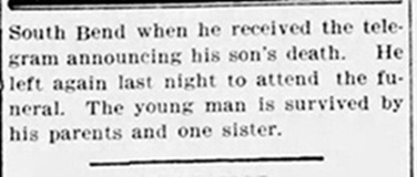 Published in the South Bend Tribune on Wednesday, August 9, 1905.