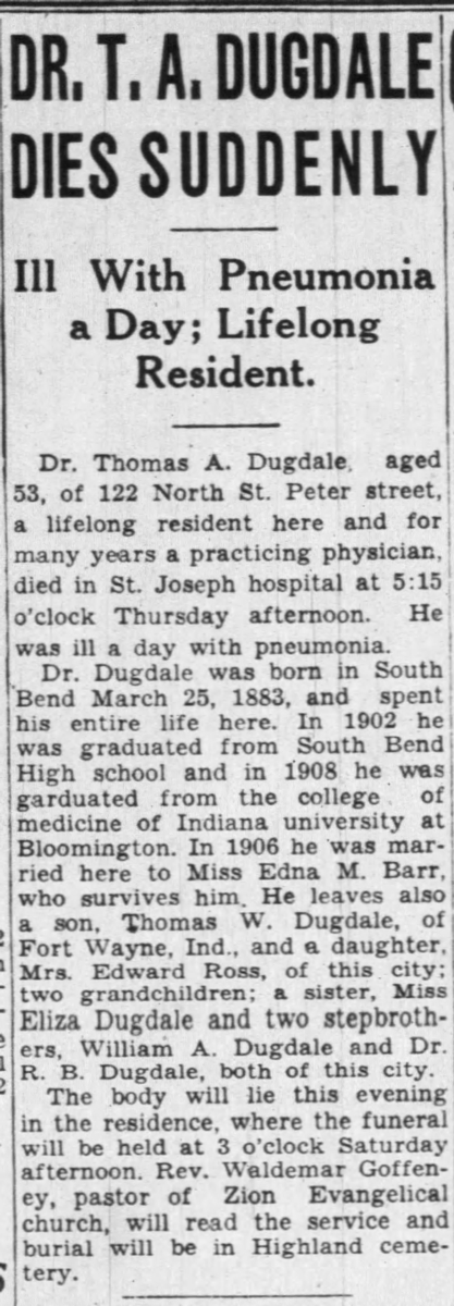 Published in the South Bend Tribune on Friday, February 12, 1937.
