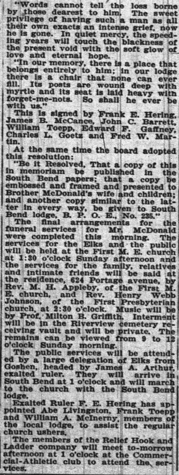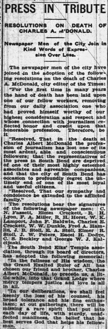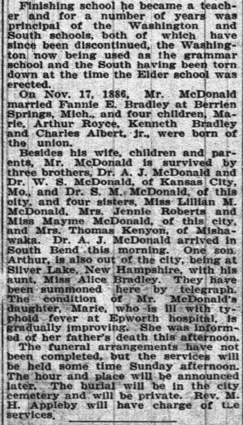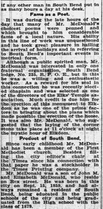 Published in the South Bend Tribune on Thursday, December 14, 1905.